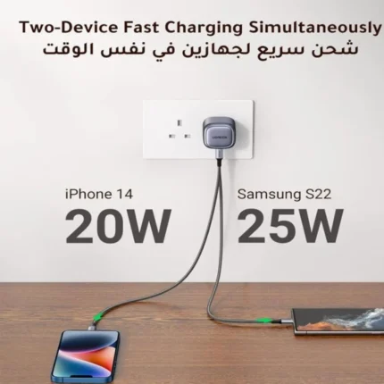 - One Charger, All Devices: By identifying connected devices and protocol, UGREEN Dual USB Type C Charger can intelligently distribute the required current to all your devices to ensure the fastest charging speed.