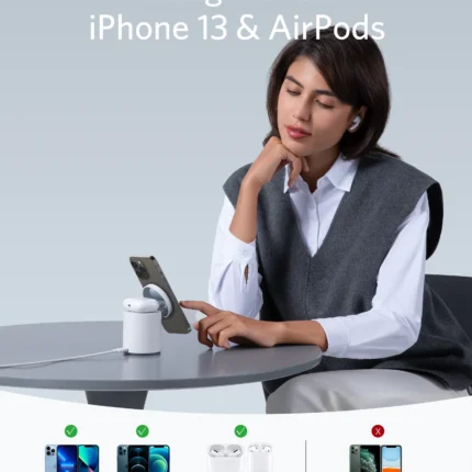 - Power for 2: Supports simultaneous wireless charging of your iPhone 13/12 and earbuds in a single place. Time to get rid of those messy cables!