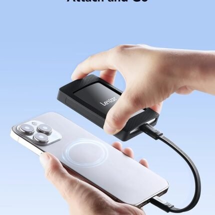 - -Snap and Go: The Lexar External SSD SL500 comes with a magnetic kit that allows it to be easily attached to your iPhone 15 series with a magnetic silicone case, or if your phone is wearing a case, we have a magnetic ring that can be attached! (Note: Magsafe wireless charging is not supported)
