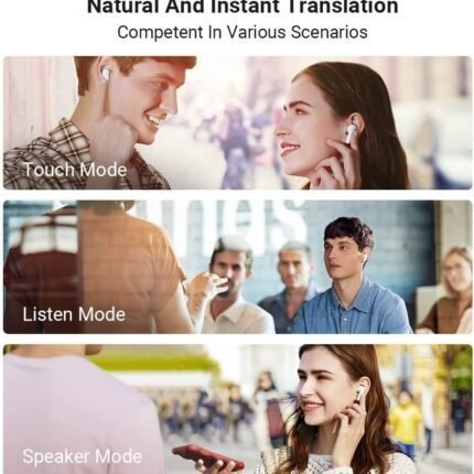 - Competent in various scenarios: Touch mode: Each wears one earbud,simply touch earbud to speak, the other will hear translation in his/her earbud. This mode is effective for one-on-one in-depth conversation. Listen Mode : The phone will pick up the sentences automatically, and translate them into the language you need. Speaker mode: You can use your smartphone or wear two earbuds to begin short conversations with anyone for directions or order food