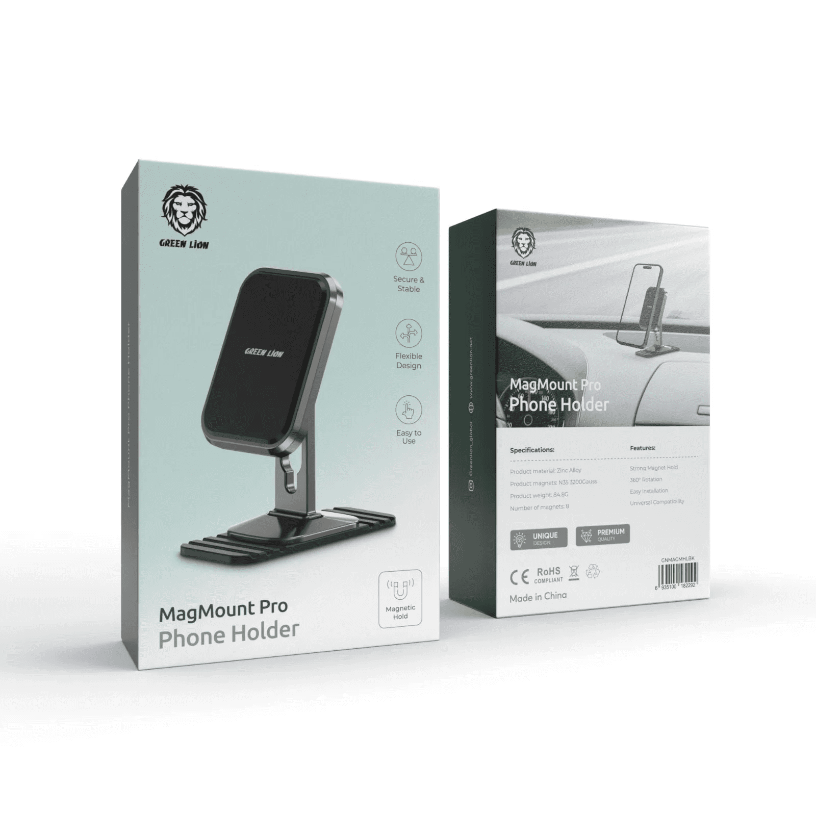 The Green Lion MagMount Pro Phone Holder is a top-tier accessory for drivers looking for a secure and versatile phone mounting solution. It features a robust magnetic hold, utilizing 8 magnets to ensure your device stays securely in place. This strong magnet hold is complemented by a flexible design, allowing for easy adjustment to accommodate various phone sizes, ensuring universal compatibility. The holder’s secure and stable grip gives you peace of mind, knowing your device is safely mounted while driving. Despite its strong holding capability, the MagMount Pro is light in weight, making it effortless to install and adjust as needed. Additionally, it offers 360° rotation, providing optimal viewing angles for navigation or entertainment purposes. The Green Lion MagMount Pro Phone Holder, with its combination of a powerful magnetic hold, flexibility, and universal compatibility, is an excellent choice for anyone seeking a reliable and user-friendly phone mounting solution.