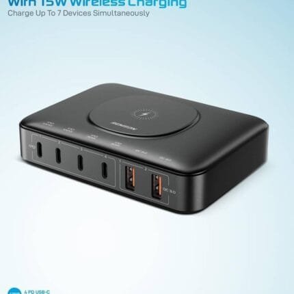 Remson Multi-Port 100W GaN Desktop Charger 15W Wireless Charging