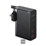 Baseus GaN5 Pro 100W 4 Port Fast Charger | 2 Type-C + 2 USB-A, UK Plug with 100W Fast Charging Data Cable Type-C (20V/5A) 1M – Black