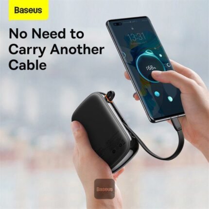 The Baseus power bank is a product that will surprise you with its finish. The device is small and handy, but it is distinguished by a large capacity – up to 20,000 mAh. On the side of the device there is a retractable USB-C cable, so you can immediately connect your phone to it and start charging. Noteworthy is also the handle with which you can conveniently carry the power bank or attach it, for example, to your backpack.