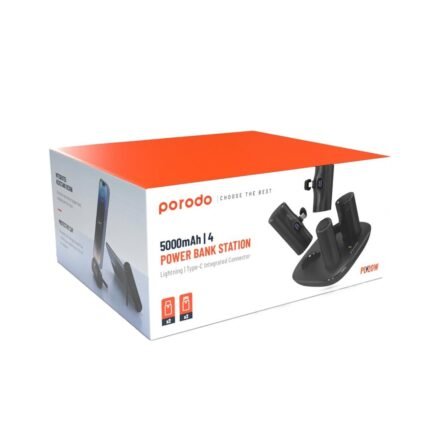 Ditch the tangled wires and endless chargers! The Porodo 4in1 Station is your ultimate charging hub, keeping all your devices powered up on-the-go. This compact powerhouse boasts wide compatibility, featuring two dedicated Lightning connectors and two Type-C connectors to charge four devices simultaneously. Each port delivers a powerful 20W output, ensuring fast and efficient charging for any device. A built-in LED display shows remaining battery life, while the integrated kickstand transforms the station into a convenient phone stand for watching videos while charging. With a protective cap for safekeeping and its ultra-portable design, the Porodo 4in1 Station is the perfect companion to keep you connected wherever you roam. It even boasts a 5000mAh capacity in each unit and supports various input options for quick recharging itself.