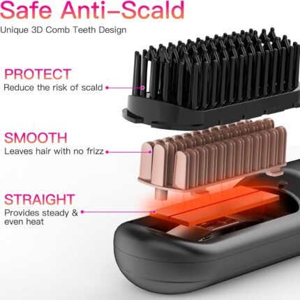 - 【Negative Ionic Hair Care】: Experience the magic of Negative Ionic Hair Care with our Cordless Straightening Comb. With every use, it releases a continuous stream of negative ions, effectively smoothing out frizz and leaving your hair softer and silkier. It’s not just a styling tool; it’s a thoughtful gift for your female friend, lover, mom, or daughter— a delightful way to share the joy of beautiful and effortlessly styled hair.