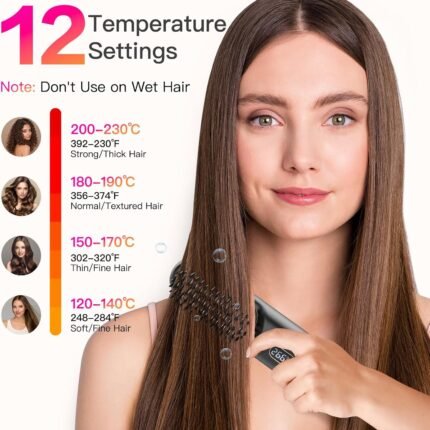 - 【12 Temperature Settings & Fast Heating】: Unlock precision styling with our Cordless Hair Straightener Brush featuring 12 customizable temperature settings to accommodate all hair types. The standout upgrade is its remarkable speed – reaching maximum temperature in just 1.5 minutes, ensuring fast and efficient styling for your everyday needs.