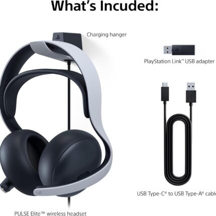 - Included in delivery: PULSE Elite Wireless Headset, PlayStation Link USB Adapter, PULSE Elite Charging Holder, Mounting Plate*, USB Cable, Printed Products