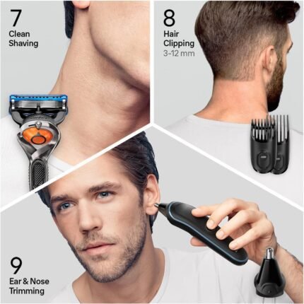 - 9-In-1 Kit Includes Face & Beard Trimmer, Hair Trimmer, Body Groomer, Ear & Nose Trimmer, Clean Shave Razor