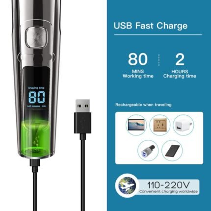 - USB Fast ChargingOnly about 2 hours charging, you can get 80 minutes shaving experience. Long last Battery life for traveling. Cordless design can help you use the beard trimmer more conveniently.