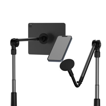 Porodo presents its new stand model, Lazy Man Stand with Magnetic Suction. It’s crafted with high quality ABS, PC and Aluminum Alloy, which give you a long lasting life span and capability of holding up to 700g of weight. It’s equipped with 16 strong ring magnets, designed to keep your phone and tablet steady and safe. The maximum length it provides is 92cm, perfect to be used as a selfie stick or extender for video shooting.