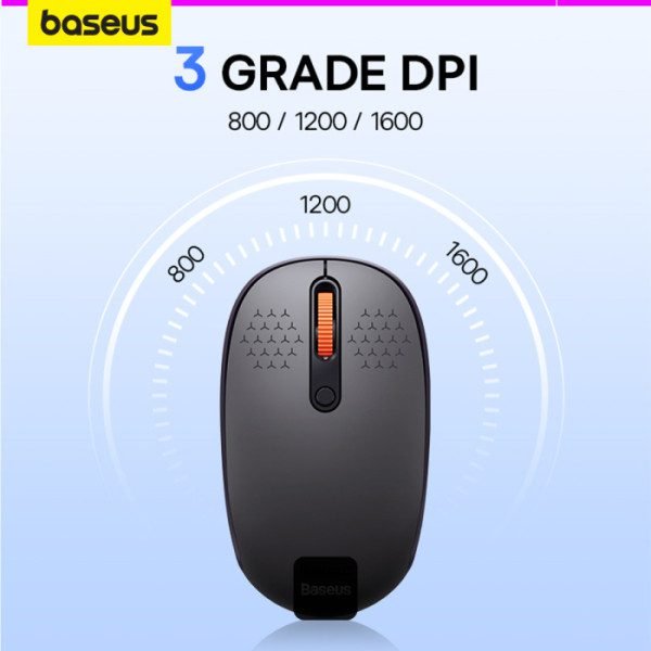 Baseus F01B Tri-Mode Wireless Mouse | Lightweight, Silent Buttons DPI-800/1000/1600 – Gray