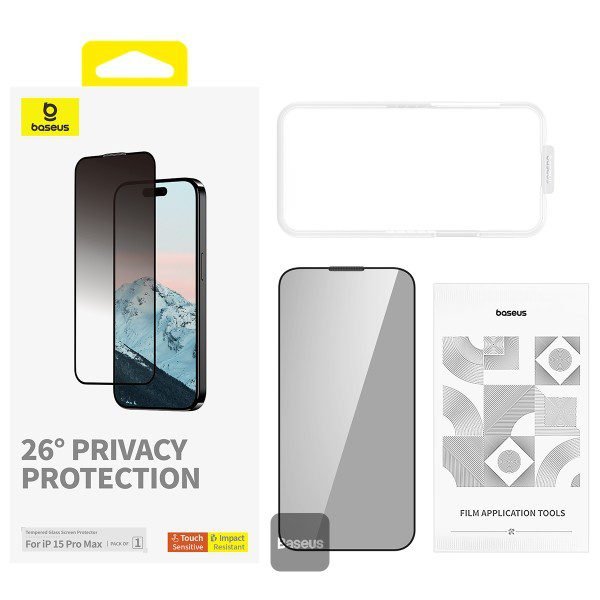 Baseus Sapphire Series Privacy Protection 9H Tempered Glass Screen Protector for iPhone 15 Pro Max
