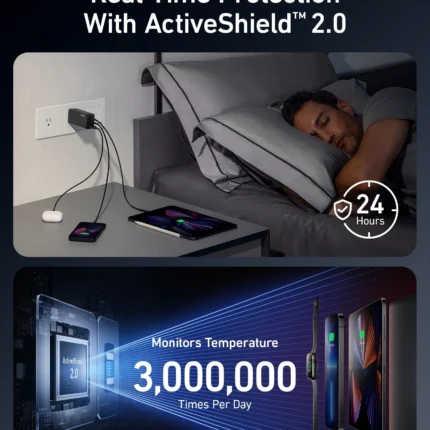 - ActiveShield 2.0: Anker’s proprietary technology enhances protection by intelligently monitoring temperature over 3 million times per day and adjusting power output to safeguard your connected devices.