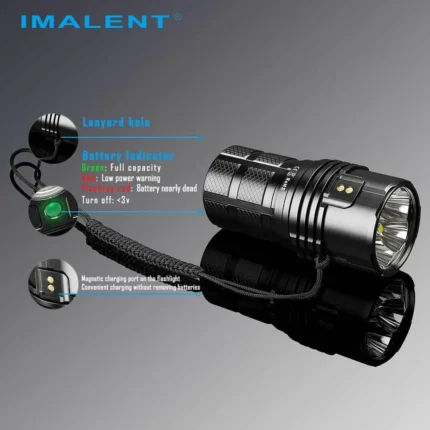 - The Imalent MS06 is a rechargeable LED flashlight with incredible lumen output and wide beam angle making it valuable for search and rescue, and outdoor activities such as hunting, cave exploring, and more. It has 5 different brightness levels from 200 lumens to 9000 lumens plus a strobe mode for an emergency situation such as self-defense and signaling. Other features include an electrical lock, and megnetic charging making it a pretty capable can-size powerful flashlight.