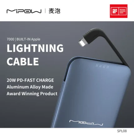 MIPOW Power Cube 7800 Portable Charger with built-in Lightning Cable – MFi Certified, Made with Full Aluminum Alloy material, 7000mAh Mini Power Bank, Charge your iPhones 50% in 20 minutes, PD 20W Battery Fast Charger for iPhone 13/13 Pro/13 Mini/12/11/XR/XS/8/7, iPad Air, Pixel 5 and More