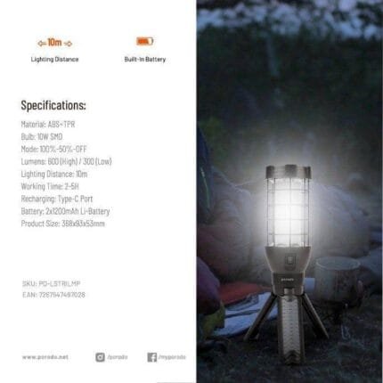 Porodo Outdoor Tripod Lamp w/ Built-In Battery