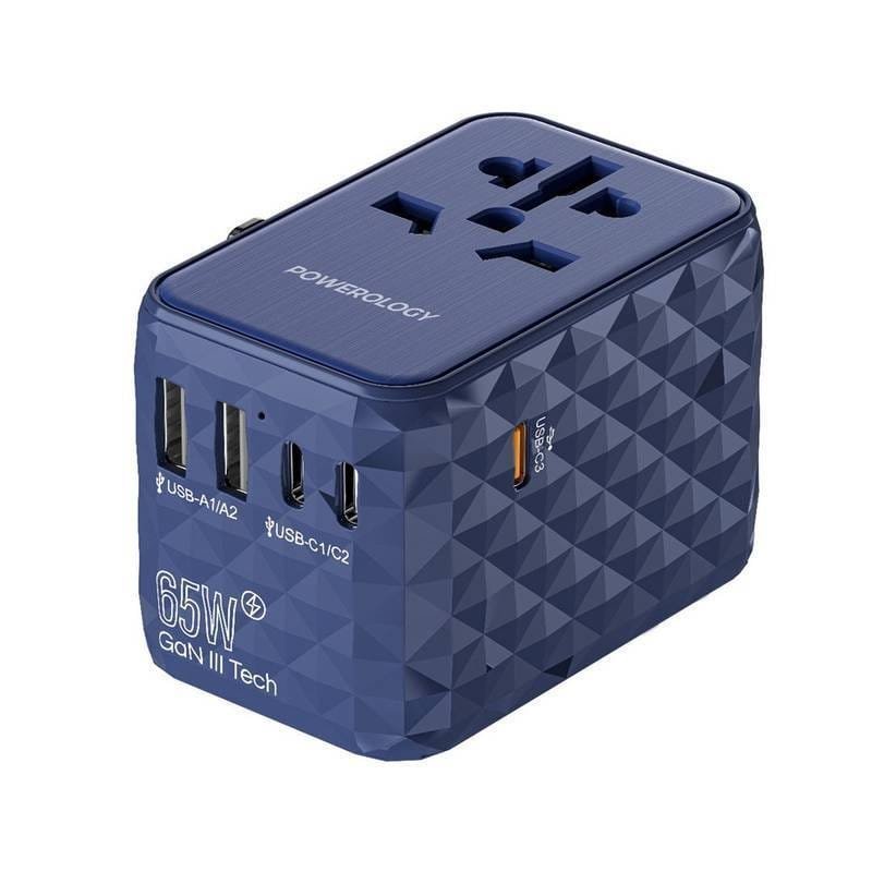 Powerology Universal Multi-Port Travel Adapter PD 65W ( 3X Type-C / 2X USB-A Ports )