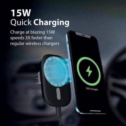 Keep your devices charged up even on the road with the VentMag-15W. Charge at 15W speeds, 3X faster than regular wireless chargers. The built-in magnet provides strong adhesion and automatically locks onto the Mag-Safe device. The hands-free design lets you view the device from any angle. High-speed charging and reliable hands-free access with VentMag-15W.