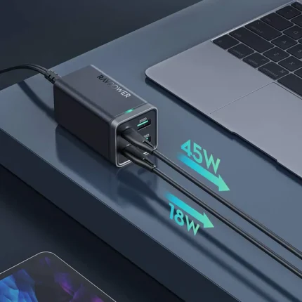 RAVPower Desktop USB Charger is the best solution to keep 4 devices charged up at a time and avoid a tangled mess of cables, with an enormous 65W of charging power and 2 USB-C PD ports, it enables you to simultaneously recharge your MacBook Air and iPad Pro at full speed.