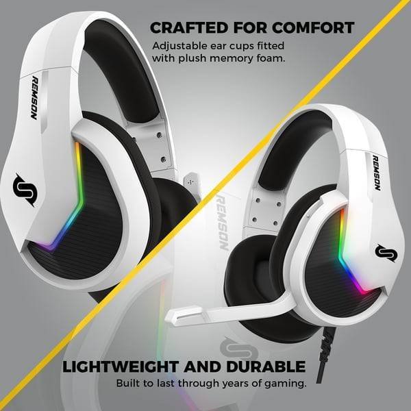 Cross-platform compatibility Remson Kyma is compatible with different platforms like PlayStation 4, New Xbox One, PC, laptop, computerSurround Stereo Subwoofer It has good quality stereo subwoofer for clear sound that works with strong brass, splendid ambient noise isolation, and a high-precision magnetic neodymium driver, giving you a vivid sound fieldGreat Humanized Design The gaming headset has a Lightweight 220g professional gaming headset, allowing you to play for hours in total comfortUpdated Premium Microphone It has a premium microphone with noise-canceling headphones incorporating an Omni-directional microphone for clarity. It offers superior audio quality, allows you to fully immerse yourself in the game.Effortless Volume Control The Headset was made by durable braided cable, effectively reduce external resistance, equipped with an in-line volume controller, one-key microphone mute